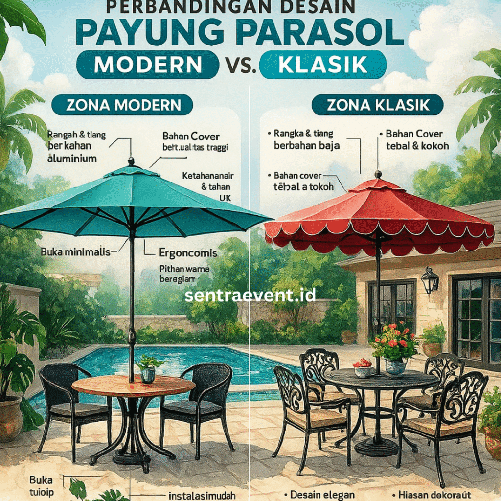 Perbandingan Set Meja Payung untuk Kafe Memilih Set Meja Payung untuk Kafe: Duel Gaya Modern vs. Klasik Dalam menjalankan bisnis